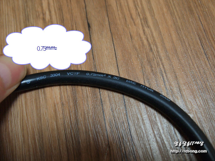 아래는 새로 교체한 PC전원케이블로 케이블의 정확한 규격이 나와 있죠 0.75mm제곱x3C 으로 최소한 이정도 규격을 갖춰야 되지 않나 싶네요 0.75mm제곱이상으로 말이죠