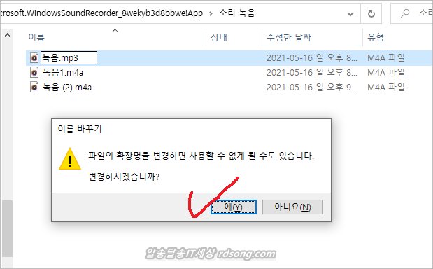 컴퓨터 소리 녹음 파일 / 윈도우 음성녹음 파일 확장명 변경