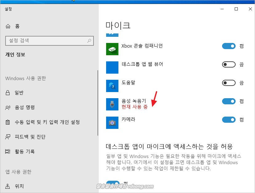 참고로, 마이크 보면 음성 녹음기 현재 사용중이라고 뜨면서 정상 작동 합니다.