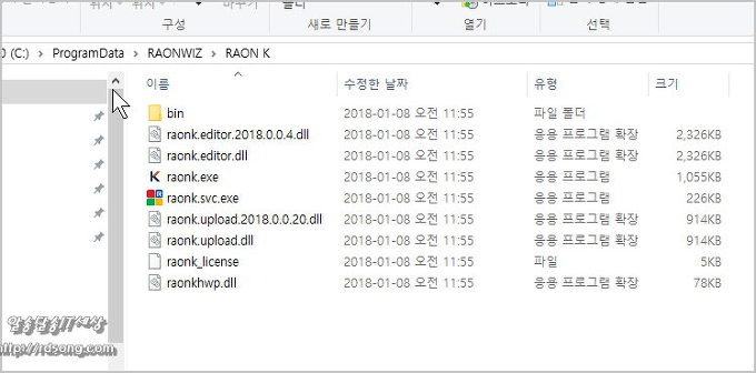 폴더 내에 raonk.exe raonk.svc.exe 파일이 존재함