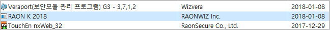 보안프로그램 RAON K 2018 인스톨 언인스톨 /삭제