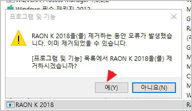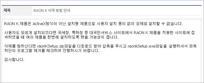 RAON K 삭제하는 방법 / 제작사 홈페이지 안내 나와 있다