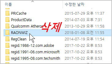 RAONWIZ 폴더삭제는 del 키로 삭제를 하면 된다