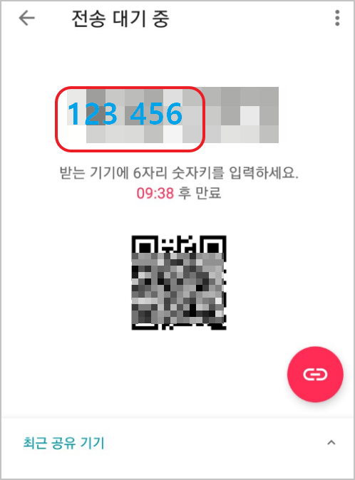 3. 전송대기중 화면이 뜨면서 숫자6자리가 나타난다 123 456