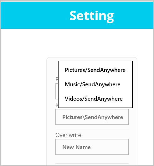 경로를 3가지 방식으로 변경 가능하고 picture/ sendanywhere ,