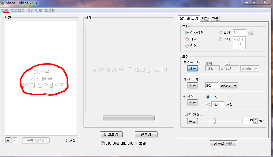 ↘Shape Collage 2.5.3  콜라쥬 사용법