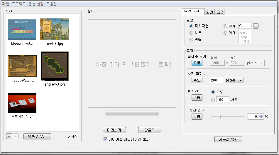 만들기를 눌러 주면 아래 처럼 중간창에 생성된 콜라쥬 이미지가 보인다