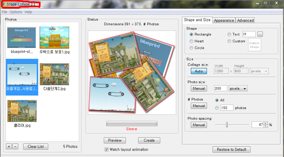 Shape collage 2.1 영문버젼 다운받기 (로고없음- 구글링 해 보세요)