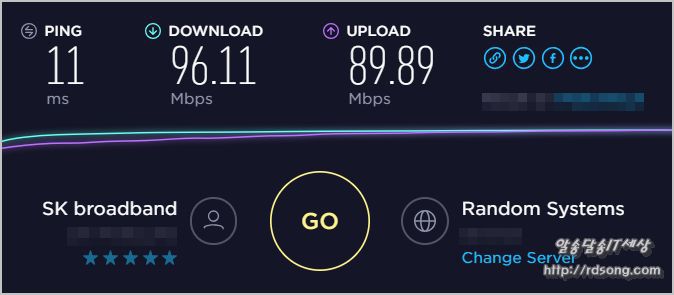 역시 광라인으로 선로가 포설이 되어 인터넷 속도 측정 해보면 다운로드속도가 96Mbps 아주 괜춘함.. 업로드 속도는 89Mbps 이다 다운로드 속도가 잘 나와줘서 웹서핑하는데 아주 장땡임!