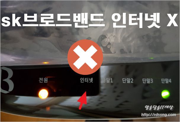 갑자기 잘 되던 인터넷 연결이 되지 않는다 sk브로드밴드 모뎀에 인터넷 LED가 들어 오지 않는데, 헐~ 광모듈쪽 선로 접속부분에 문제가 생긴 듯 뵈는데 인터넷에 LED가 점등이 되어야 하는데 꺼져 있는 상태이다