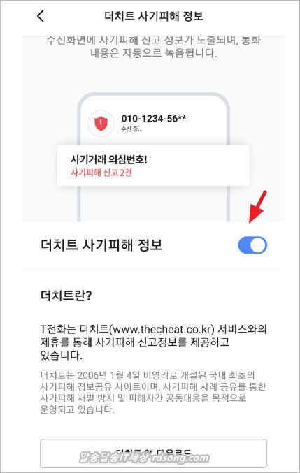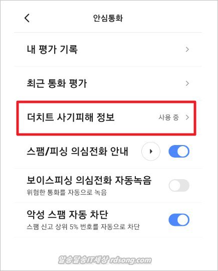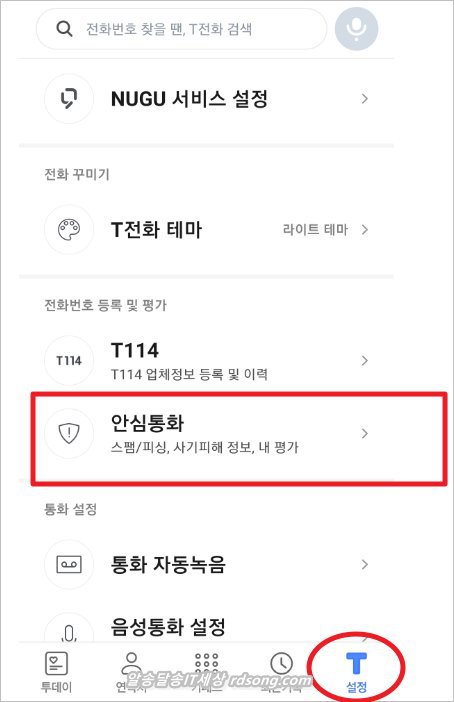이번 업데이트에서 한가지 추가 된 것이 있는데 안심통화에 더치트 정보 입니다. T설정에서 > 안심통화