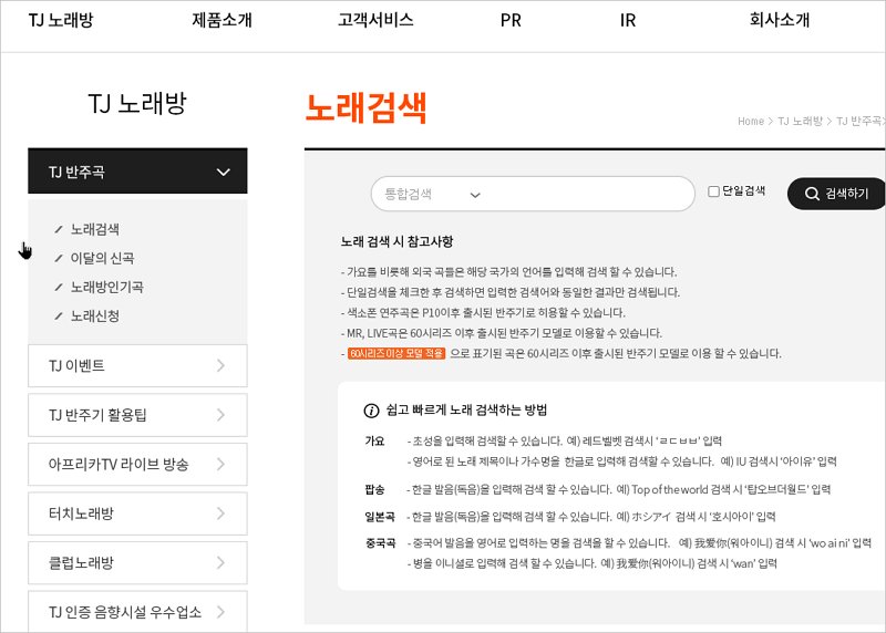 tj미디어 노래검색, 태진 노래검색 하는 방법