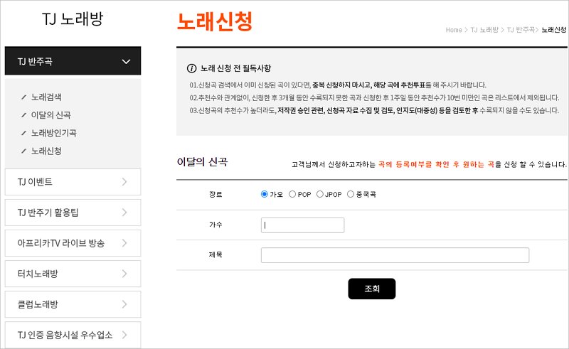 또한 TJ미디어 노래신청 할수도 있습니다.