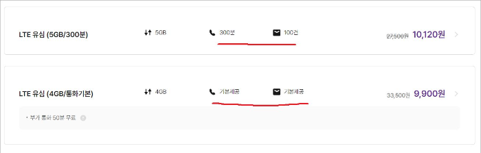 유모바일 요금제 중에 이것이 가장 맘에 드네요