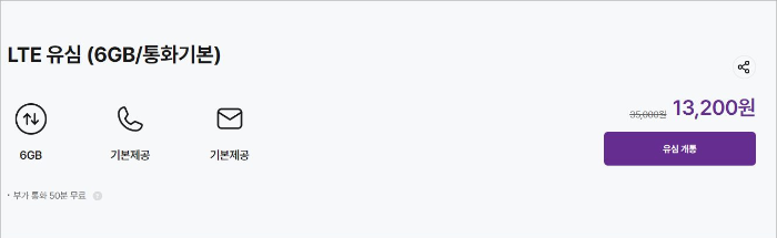 let유심 6GB 통화기본제공 문자기본 제공 13,300원
