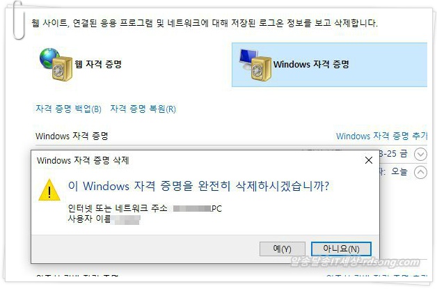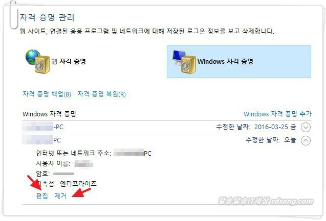windows 자격 증명 / 웹 자격 증명 삭제 편집 하기