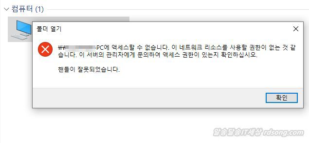 다른 컴퓨터에 연결하려고 하니 컴퓨터에 액세스 할수 없습니다 라고 에러를 띄워서 접근이 되지 않는 경우 때문에 수정을 했습니다